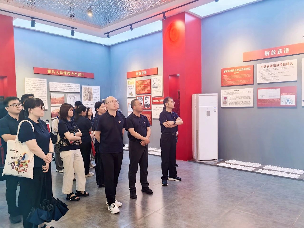 隨后,黨員們集體參觀了渡江第一船紀(jì)念館。館內(nèi)陳列的歷史照片、實(shí)物展品和多媒體影像,生動(dòng)再現(xiàn)了渡江戰(zhàn)役的壯闊場景。在“第一船”起航地遺址前,黨員們駐足凝視,仿佛穿越時(shí)空,感受到革命先輩“百萬雄師過大江”的磅礴氣勢。黨員們紛紛表示,此次活動(dòng)既是一次深刻的黨性教育,更是一堂生動(dòng)的實(shí)踐課,要將革命精神轉(zhuǎn)化為干事創(chuàng)業(yè)的動(dòng)力。